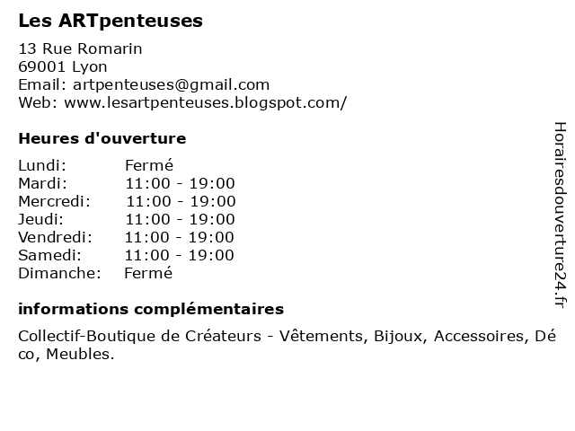 | Jeudi | 11:00-19:00 |