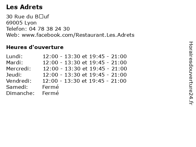 | Mardi | 12:00-13:30 et 19:45-21:00 |