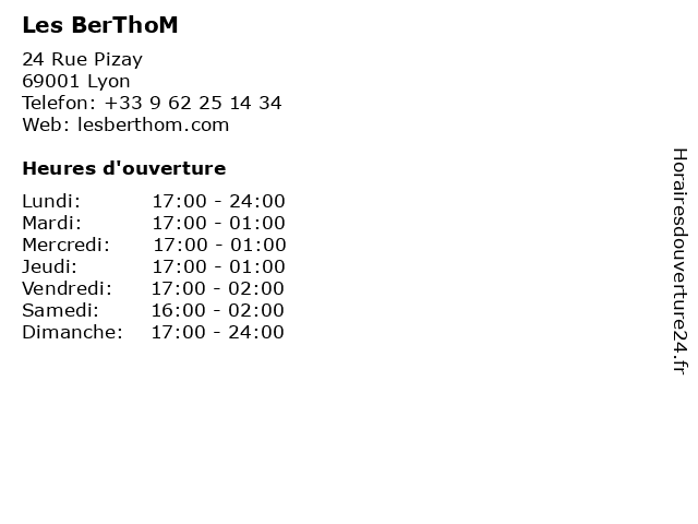 | Jeudi | 17:00-01:00 |