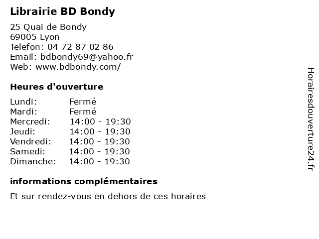 | Samedi | 14:00-19:30 |