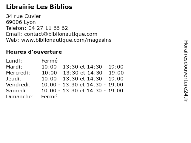 | Mercredi | 10:00-13:30 et 14:30-19:00 |