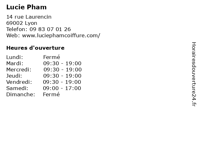 | Lundi | Fermé |