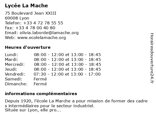 | Lundi | 08:00-12:00 et 13:00-18:45 |