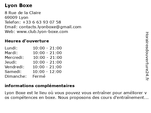 1 Lyon 69 - Apollo Sporting Club (Distance: 4,83 km) 59 Sainte-Geneviève, 69006 Lyon 69, apollo, bien-être, boxe, club, fitness, lyon, sport, sporting 2 Neoness (Distance: 6,75 km) 141 Rue Marius Berliet, 69008 Lyon 8ème, boxe, cardio, du, fitness, lyon, mairie, musculation, neoness, salle de sport 3 Full Contact Gym Boxe (Distance: 27,00 km) 40 Rue de la Convention, 38200 Vienne boxe, contact, full, gim, gym, école 4 Planète Fitness (Distance: 45,37 km) 37 Avenue de la libération, 01500 Ambérieu en Bugey boxe, boxing, club, fitness, planète 5 |