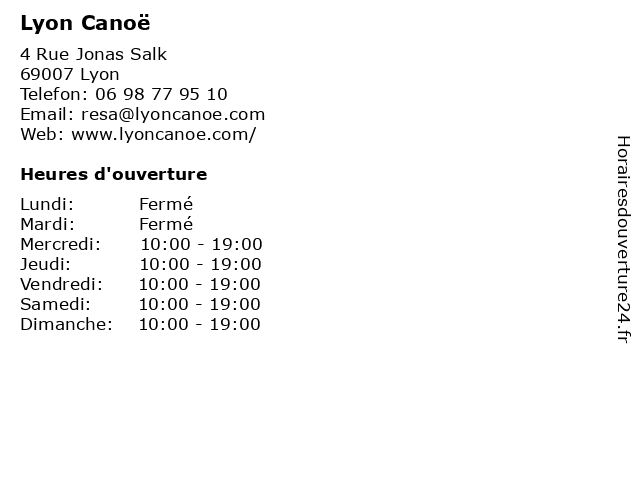 | Lundi | Fermé |