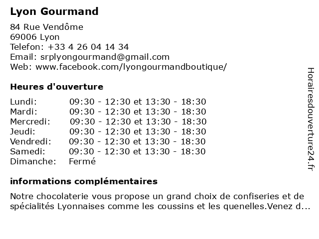 | Samedi | 09:30-12:30 et 13:30-18:30 |