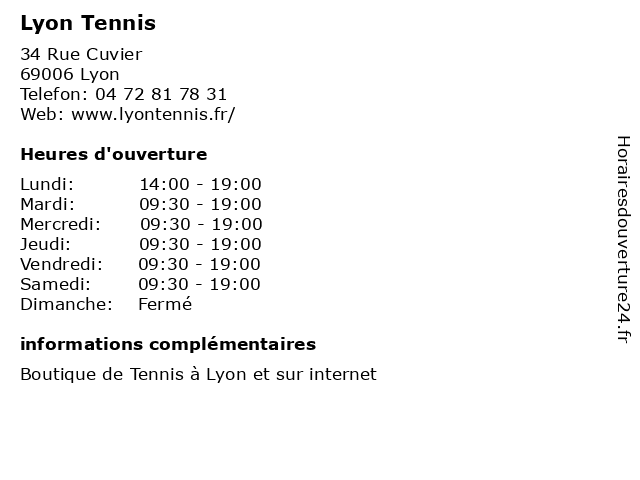 2 Tennis Club de Rognac (Distance: 1,69 km) . Montée du Belvédère, 69300 Caluire-et-Cuire club, de, ecole, rognac, tennis, équipes 3 Tennis Club de Lyon (Horaires de l’accueil) (Distance: 2,15 km) 3 Boulevard du 11 novembre, 69100 Villeurbanne club, de, ecole, horaires, lyon, l’accueil, tennis, équipes 4 Tennis Club Tcbj (Distance: 3,47 km) 1 Place Henri Drevet, 38305 Bourgoin-Jallieu cedex club, d'ouverture, ecole, horaires, tcbj, tennis, équipes 5 Lyon Tennis Park - Bureaux (Distance: 5,27 km) 1 Quai Fillon, 69007 Lyon bureaux, club, des, ecole, horaires, lyon, park, tennis, équipes 6 Tennis Club de Vaulx (Horaires d'ouverture du Club House) (Distance: 6,84 km) 131 Avenue Paul Marcellin, 69120 Vaulx En Velin club, d'ouverture, de, du, ecole, horaires, house, tennis, vaulx, équipes |