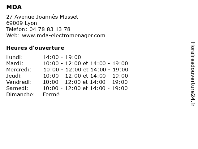 1 MDA (Distance: 16,26 km) - Rue du pré Caillat, 01700 Beynost climatisatio, image, mda, multimédia, électroménager 2 MDA Electroménager Discount (Distance: 2,71 km) 1 Rue Pailleron, 69004 Lyon discount, electroménager, mda 3 MDA Electroménager Discount (Distance: 3,38 km) 1 Place Antonin Jutard, 69003 Lyon discount, electroménager, mda 4 MDA Electroménager Discount (Distance: 4,36 km) 26 Avenue Général de Gaulle, 69410 Champagne-au-Mont-d'Or discount, electroménager, mda 5 MDA Electroménager Discount (Distance: 5,37 km) 15 Avenue Edouard Millaud, 69290 Craponne discount, electroménager, mda 6 MDA Electroménager Discount (Distance: 6,22 km) 112 Avenue Roger Salengro, 69100 Villeurbanne discount, electroménager, mda |