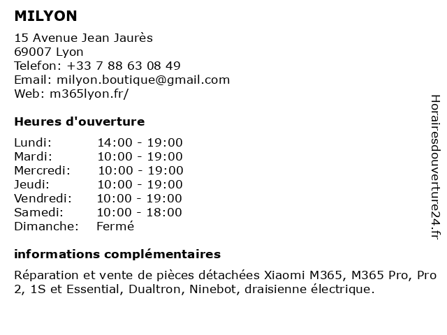 | Mercredi | 10:00-19:00 |