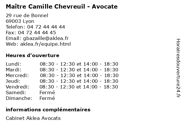 | Lundi | 08:30-12:30 et 14:00-18:30 |