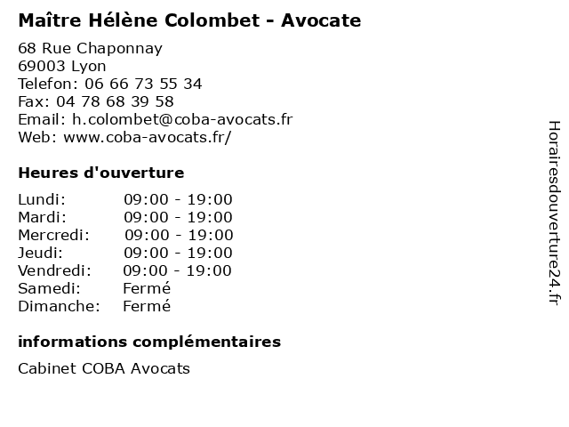 1 Maître Hélène Exiga - Avocate (Distance: 0,65 km) 2 rue Président Carnot, 69002 Lyon avocate, avocats, cabinet, conseils, contentieux, exiga, hélène, juridique, justice, litiges, maître, services 2 Maître Hélène Presle-Lejeune - Avocate (Distance: 0,75 km) 50 rue de Marseille, 69007 Lyon avocate, avocats, cabinet, conseils, contentieux, hélène, juridique, justice, lejeune, litiges, maître, presle, services 3 Maître Hélène Camier - Avocate (Distance: 0,77 km) 20 Quai Jean Moulin, 69002 Lyon avocate, avocats, cabinet, camier, conseils, contentieux, hélène, juridique, justice, litiges, maître, services 4 Maître Hélène Ladire - Avocate (Distance: 0,77 km) 20 Quai Jean Moulin, 69002 Lyon avocate, avocats, cabinet, conseils, contentieux, hélène, juridique, justice, ladire, litiges, maître, services 5 Dr Hélène Bonnardel - Médecin généraliste (Distance: 0,81 km) 24 Rue d'Arménie, 69003 Lyon bonnardel, docteur, dr, generaliste, généraliste, hélène, medical, médecin, soin 6 Maître Marie-Hélène Corbi - Avocate (Distance: 0,81 km) 6 place Bellecour, 69002 Lyon avocate, avocats, cabinet, conseils, contentieux, corbi, hélène, juridique, justice, litiges, marie, maître, services |