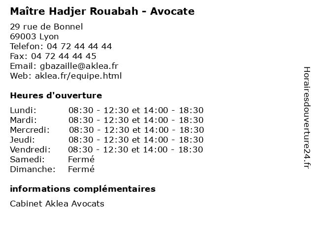 | Lundi | 08:30-12:30 et 14:00-18:30 |