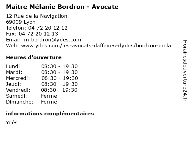 | Lundi | 08:30-19:30 |