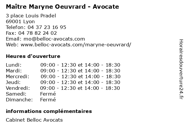 | Lundi | 09:00-12:30 et 14:00-18:30 |