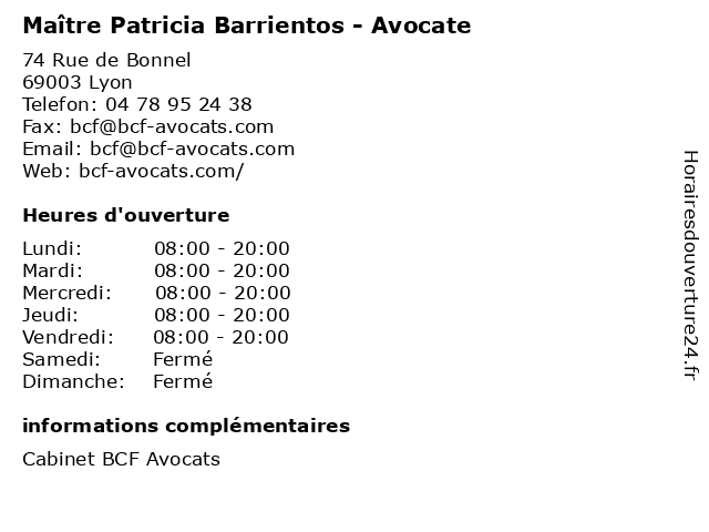 1 Maître Patricia Seigle - Avocate (Distance: 0,00 km) 21 Rue de Bonnel, 69003 Lyon avocate, avocats, cabinet, conseils, contentieux, juridique, justice, litiges, maître, patricia, seigle, services 2 Dr Patricia Blanchard - Stomatologue (Distance: 0,32 km) 10 Rue de Sevigné, 69003 Lyon blanchard, dr, médecin, médecine, médical, patricia, pharmaceutique, secretariat, stomatologue, traitement 3 Maître Patricia Mortier - Avocate (Distance: 0,56 km) 65 rue du président Edouard Herriot, 69002 Lyon avocate, avocats, cabinet, conseils, contentieux, juridique, justice, litiges, maître, mortier, patricia, services 4 Lemanja Communication - Patricia Moreau (Distance: 0,56 km) 57 Rue du Président Édouard Herriot, 69002 Lyon agences, communication, lemanja, marketing, moreau, patricia, publiques, relations 5 Boulhol Patricia (Distance: 1,14 km) Niveau 2 Emplacement n k25, 69003 Lyon boulhol, patricia, restaurants 6 Patricia Ardillier - Hypnothérapeute (Distance: 1,33 km) 37 Rue Vendôme, 69006 Lyon ardillier, hypno, hypnose, hypnothérapeute, patricia, sante |