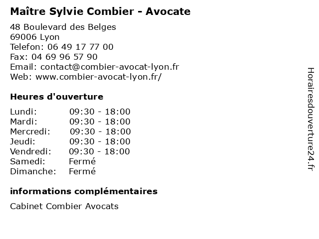 1 Maître Sylvie Combier - Avocate (Distance: 0,00 km) 48 Boulevard des Belges, 69006 Lyon avocate, avocats, cabinet, combier, conseils, contentieux, juridique, justice, litiges, maître, services, sylvie 2 Dr. Avanzo Sylvie - Psychologue (Distance: 0,42 km) 18 Rue Crillon, 69006 Lyon avanzo, docteur, dr., medecins, psychologue, sante, sylvie 3 Café Comptoir Chez Sylvie (Distance: 1,69 km) 30 rue Tupin, 69002 Lyon alimentaire, bistro, café, chez, comptoir, restaurant, sylvie 4 Dr Sylvie-Anne André-Gomez - Pédiatre (Distance: 2,04 km) 65 Rue Pasteur, 69300 Caluire-et-Cuire andré, anne, care, clinic, dentist, dr, france, gomez, gynécologue, health, kinesitherapeute, ophtalmologiste, orl, psychologue, pédiatre, service, sylvie 5 Sylvie Thiriez (Distance: 2,88 km) 62 Rue Auguste Comte, 69002 Lyon décoration, linge de maison, services, sylvie, thiriez 6 Dr Patrice Combier - Médecin généraliste (Distance: 2,95 km) 80 Quai Joseph Gillet, 69004 Lyon combier, consultation, docteur, dr, générale, généraliste, medecins, médecin, médecine, patrice, rendez, santé, sur, vous |