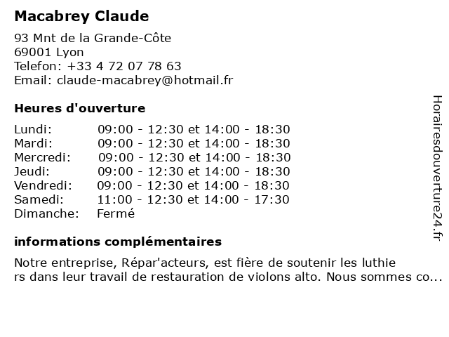 | Lundi | 09:00-12:30 et 14:00-18:30 |