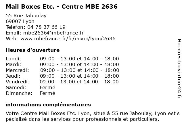 1 Agence CREA ETC. (Distance: 0,33 km) 43 Cours Gambetta, 69003 Lyon agence, agences, communication, crea, etc, etc., marketing, publiques, relations 2 Mail Boxes Etc. - Centre MBE 0002 (Distance: 2,31 km) 72 Cours de la république, 69100 Villeurbanne 0002, boxes, bureau de poste, centre, etc., fournisseur de matériel d'emballage, impression commerciale, imprimerie, location de boîtes postales, magasin de fournitures de bureau, mail, mbe 3 Lingerie du Mail (Distance: 2,32 km) 7 Rue Victor Fort, 69004 Lyon boxer, culottes, du, lingerie, mail, nuisette, nuit 4 Pharmacie du Mail (Distance: 2,41 km) 1 Rue Dumenge, 69004 Lyon aromatherapie, du, mail, médical, médicaments, paramédical, parapharmacie, pharmacie, santé, traitements 5 Eurorepar - Garage du Mail (Distance: 2,58 km) 26-28 rue du Mail, 69004 Lyon atelier, automobiles, carrosserie, du, eurorepar, garage, mail, reparation 6 Qui Croque Craque Etc... (Distance: 3,41 km) 22 Avenue Rockefeller, 69008 Lyon craque, croque, etc..., qui |