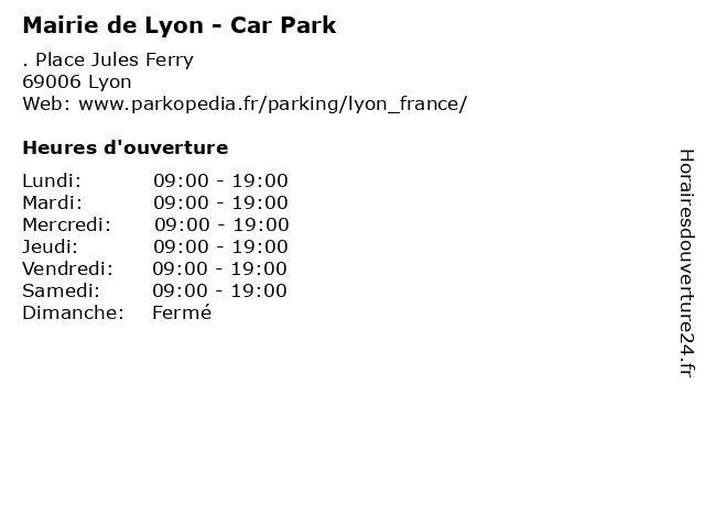 1 Mairie de Lyon - Car Park (Distance: 0,56 km) 10-12 Boulevard Marius Vivier Merle, 69003 Lyon automobile, car, de, lyon, mairie, park, parking, services 2 Mairie de Lyon - Car Park (Distance: 0,69 km) 17 Rue du Docteur Bouchut, 69003 Lyon automobile, car, de, lyon, mairie, park, parking, services 3 Mairie de Lyon - Car Park (Distance: 0,99 km) . Garibaldi, 69006 Lyon automobile, car, de, lyon, mairie, park, parking, services 4 Mairie de Lyon - Car Park (Distance: 1,27 km) . Place des Martyrs de la Résistance, 69003 Lyon automobile, car, de, lyon, mairie, park, parking, services 5 Mairie de Lyon - Car Park (Distance: 1,54 km) . Saint-Jacques, 69003 Lyon automobile, car, de, lyon, mairie, park, parking, services 6 Mairie de Lyon - Car Park (Distance: 1,69 km) 6 Rue de Bonnefoi, 69003 Lyon automobile, car, de, lyon, mairie, park, parking, services |