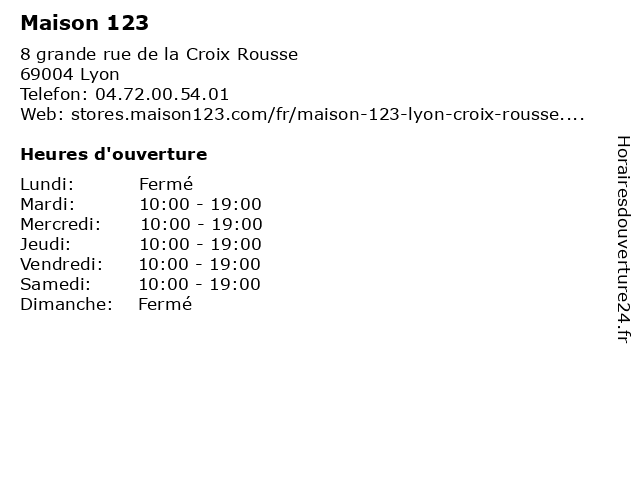 1 Maison 123 (Distance: 2,14 km) 16 Place Bellecour, 69002 Lyon 123, accessoires, chaussures, maison, maroquinerie, mode 2 Maison 123 (Distance: 2,44 km) 209 rue du Docteur Bouchut, 69003 Lyon 123, accessoires, chaussures, maison, maroquinerie, mode 3 Maison 123 (Distance: 5,03 km) . Chemin Jean-Marie Vianney, 69130 Ecully 123, accessoires, chaussures, maison, maroquinerie, mode 4 Maison 123 (Distance: 6,71 km) 209-221 Boulevard Pinel, 69500 Bron 123, accessoires, chaussure, femme, maison, mode, vêtements 5 Maison 123 (Distance: 11,21 km) - avenue Charles de Gaulle, 69230 Saint-Genis-Laval 123, accessoires, chaussures, maison, maroquinerie, mode 6 Crèche 123 Eveil - Eveil des Gones Tronchet (Distance: 1,15 km) 49 Rue Tronchet, 69006 Lyon 123, crèche, des, enfants, eveil, garde, garderie, gones, halte, tronchet |