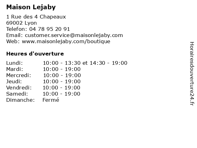 | Lundi | 10:00-13:30 et 14:30-19:00 |