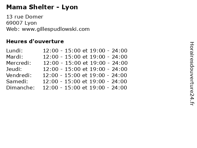 | Mardi | 12:00-15:00 et 19:00-24:00 |
