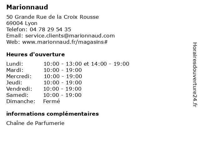| Lundi | 10:00-13:00 et 14:00-19:00 |