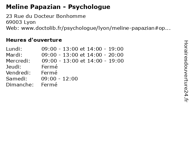 | Lundi | 09:00-13:00 et 14:00-19:00 |