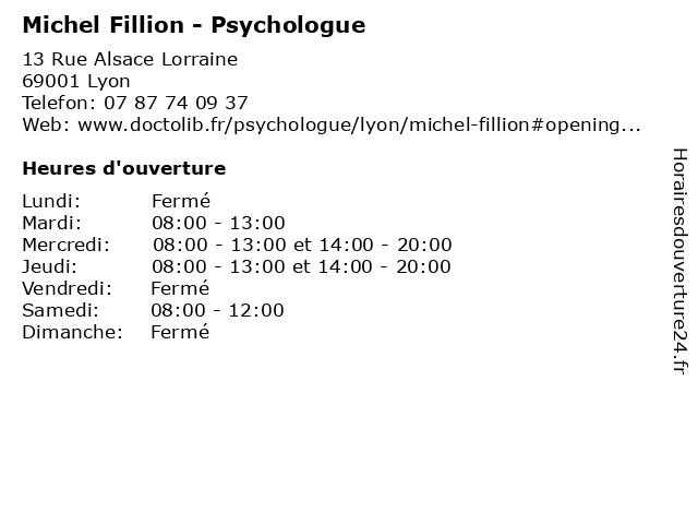 | Jeudi | 08:00-13:00 et 14:00-20:00 |