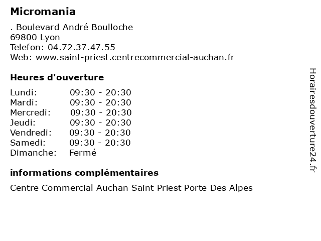 1 Micromania (Distance: 0,00 km) 1 Niveau, 69003 LYON electronique, grand magasin, marchandises, marché, micromania, ordinateur, shop, shopping, technique 2 Micromania (Distance: 2,50 km) 17 rue du Docteur Bouchut, 69431 Lyon consoles, jeux, loisirs, micromania, pc, playstation, vidéos 3 Micromania (Distance: 2,96 km) 10 Chemin Jean Petit, 69300 Lyon beaute, bouygues, cafe, chausures, club, enfants, micromania, mode femmes, mode hommes, restaurant, sport, telecom 4 Micromania - Zing LYON CENTRE VILLE (Distance: 1,70 km) 7 Rue Victor Hugo, 69002 LYON centre, lyon, magasin de jouets, micromania, ville, zing 5 Micromania - Zing DOCK GAMES LYON - Fermé (Distance: 2,55 km) Dg C.cial La Part Dieu, 69003 LYON dock, fermé, games, lyon, magasin de jouets, micromania, zing 6 Micromania Zing (Distance: 3,95 km) . Chemin Jean-Marie Vianney, 69130 Ecully consoles, jeux, loisirs, micromania, pc, playstation, vidéos, zing |