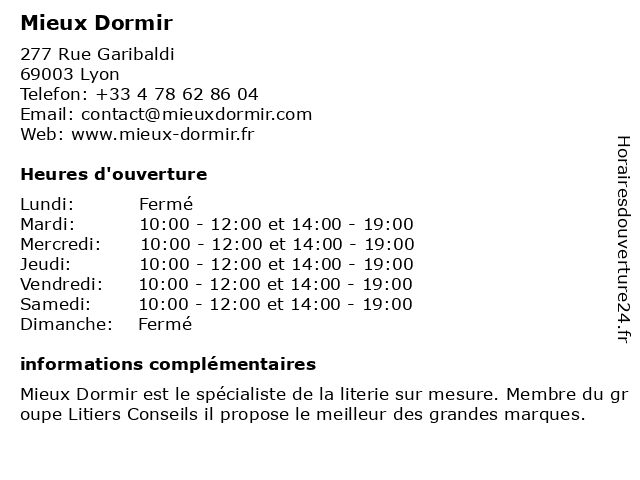 | Mercredi | 10:00-12:00 et 14:00-19:00 |