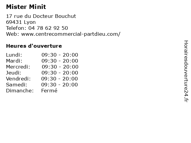 1 Mister Minit (Distance: 0,53 km) - Boulevard Vivier Merle, 69003 Lyon chaussures, minit, mister, montres, réparation, smartphones 2 Mister Minit (Distance: 2,50 km) . Boulevard André Boulloche, 69800 Lyon accesories, beaute, cafe, enfants, homme, minit, mister, mode femme, restaurant 3 Mister Minit (Distance: 2,70 km) - Boulevard des Canuts, 69004 Lyon des timbres, gravure, l'essentiel de l'entretien des chaussures, minit, mister 4 Mister Minit (Distance: 4,10 km) 209 Boulevard Pinel, 69500 Lyon gravure, l'essentiel de l'entretien des chaussures, minit, mister, société: des timbres 5 Mister Minit (Distance: 6,49 km) - Boulevard de l'Université, 69800 Saint-Priest chaussures, gravur, minit, mister, montres, réparation, services, smartphones 6 Mister Minit (Distance: 6,90 km) - ZAC du Champ du Pont, 69800 Lyon Saint Priest chaussures, minit, mister, montres, réparation, smartphones |