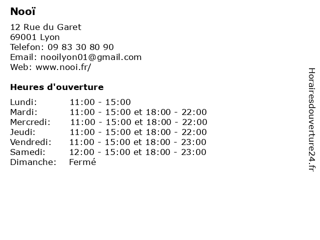 | Samedi | 12:00-15:00 et 18:00-23:00 |