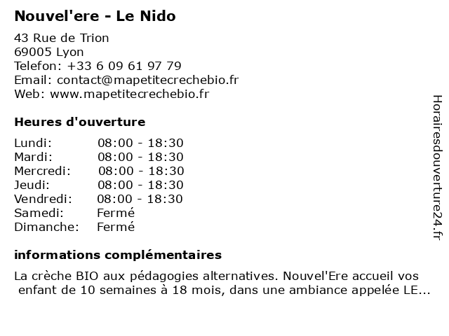 2 Dr Migueline Nouvel - Endocrinologue (Distance: 4,10 km) 25 Avenue des Sources, 69009 Lyon consultation, docteur, dr, endocrinologue, med, migueline, médecin, médecine, nouvel, secrétariat, traitement 3 Dr Michel Nouvel - Gynécologue obstétricien (Distance: 5,54 km) 22 Avenue Rockefeller, 69008 Lyon consultation, docteur, dr, echographie, gynécologie, gynécologue, michel, nouvel, obstétricien, obstétrique, santé, secrétariat 4 Crèche People and Baby - Le Nido de Montchat (Distance: 5,55 km) 52 Avenue du Château, 69003 Lyon and, baby, crèche, crèches, de, garde d'enfants, le, les services parentalité, montchat, nido, people, projet social, projet éducatif 5 Nouvel'R (Distance: 5,88 km) 3 Rue De L' Eglise, 69003 Lyon beauté, coiffeur, coiffure, coloration, coupe, nouvel'r 6 Le Nouvel Atelier (Distance: 10,20 km) 70 Rue du Vieux Bourg, 69126 Brindas atelier, beauté, brushing, coiffeur, coiffure, coloration, coupe, le, nouvel |