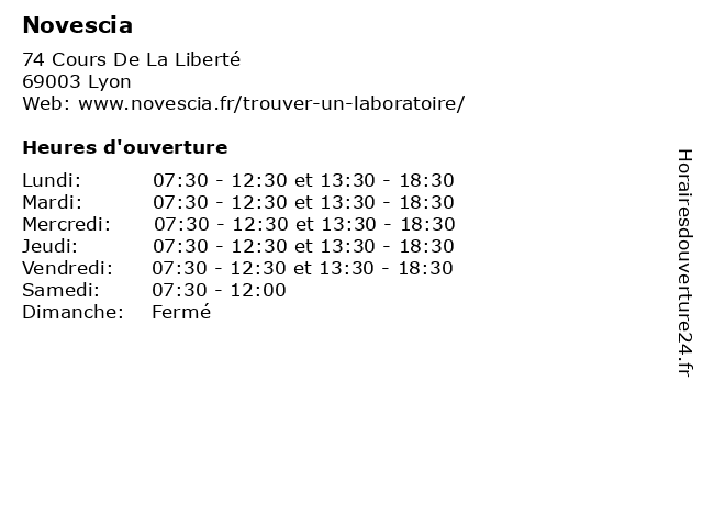 | Lundi | 07:30-12:30 et 13:30-18:30 |
