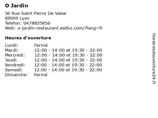 | Mardi | 12:00-14:00 et 19:30-22:00 |