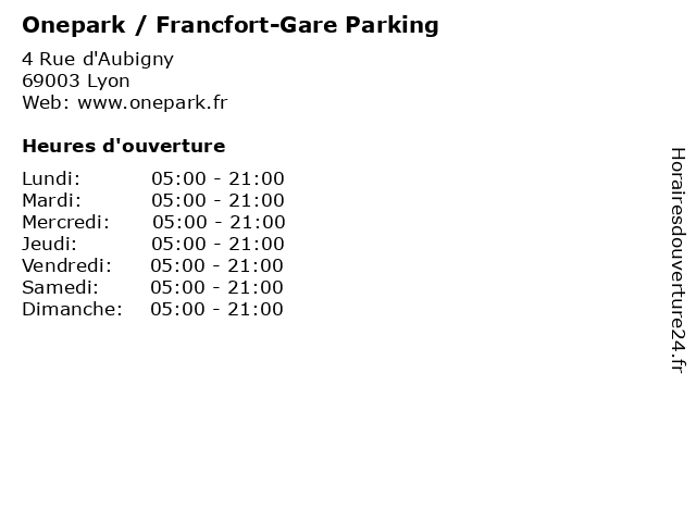 2 Parking Q-Park Lyon Francfort - Gare Part-Dieu (Distance: 0,01 km) 2 Rue d'Aubigny, 69003 Lyon dieu, francfort, gare, lyon, park, parking, part, stationnement 3 Onepark / Parc Cuirassiers Parking (Distance: 0,51 km) 17 Rue du Docteur Bouchut, 69003 Lyon cuirassiers, onepark, parc, parking, services 4 Onepark / Parc Bonnefoi Parking (Distance: 1,46 km) 8 Rue de Bonnefoi, 69003 Lyon bonnefoi, onepark, parc, parking, services 5 Onepark / Bechevelin Parking (Distance: 1,92 km) 16 Rue Béchevelin, 69007 Lyon bechevelin, onepark, parking, services 6 Onepark / Parc République Parking (Distance: 1,95 km) 24 Rue Childebert, 69002 Lyon onepark, parc, parking, république, services |