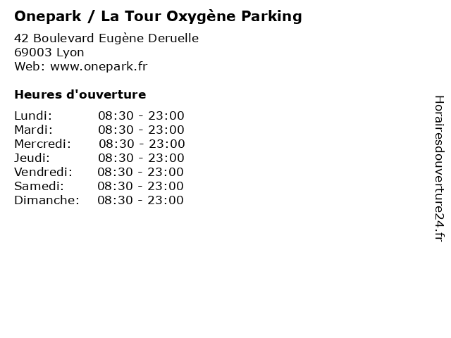 1 Onepark / La Tour Oxygène Parking (Distance: 0,00 km) 42 Boulevard Eugène Deruelle, 69003 Lyon la, onepark, oxygène, parking, services, tour 2 Onepark / Parc Cuirassiers Parking (Distance: 0,20 km) 17 Rue du Docteur Bouchut, 69003 Lyon cuirassiers, onepark, parc, parking, services 3 Onepark / Parc Bonnefoi Parking (Distance: 1,21 km) 8 Rue de Bonnefoi, 69003 Lyon bonnefoi, onepark, parc, parking, services 4 Onepark / Parc Cordeliers Parking (Distance: 1,50 km) 16 Rue Antoine Salles, 69002 Lyon cordeliers, onepark, parc, parking, services 5 Onepark / Parc République Parking (Distance: 1,52 km) 24 Rue Childebert, 69002 Lyon onepark, parc, parking, république, services 6 Onepark / Parc Hôtel de Ville Parking (Distance: 1,56 km) - Place Louis Pradel, 69001 Lyon de, hôtel, onepark, parc, parking, services, ville |