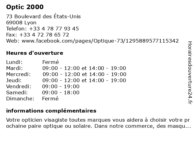 3 Optic 2000 (Distance: 2,76 km) 214 Rue Marcel Mérieux, 69000 Lyon 2000, accessoires, lentilles, lunettes, montures, optic, optic 2000, opticien, solaire, verres, vision, vue 5 Optic 2000 (Distance: 5,64 km) 39 Grande Rue de la Croix Rousse, 69004 Lyon 2000, lunettes, optic, opticien, optique 6 |