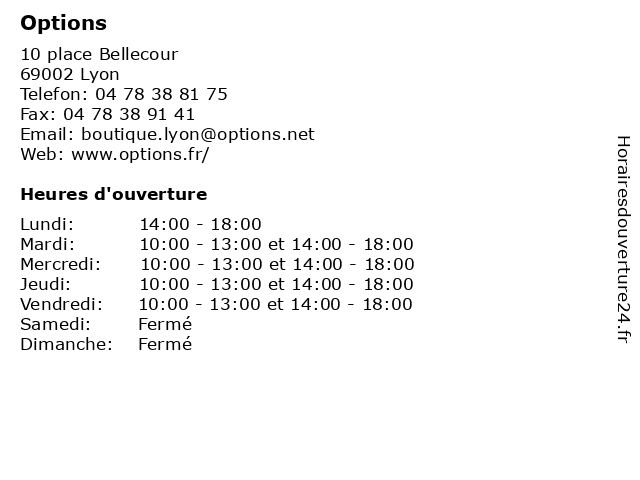| Vendredi | 10:00-13:00 et 14:00-18:00 |