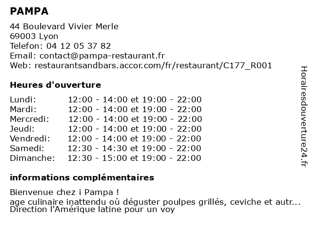 | Dimanche | 12:30-15:00 et 19:00-22:00 |