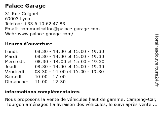 | Lundi | 08:30-14:00 et 15:00-19:30 |