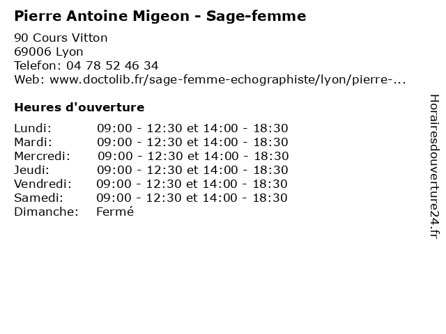| Samedi | 09:00-12:30 et 14:00-18:30 |