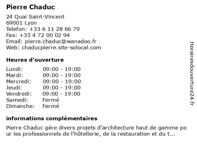 1 Pierre de Lune Immobilier (Distance: 0,50 km) 50 quai Saint-Vincent, 69001 Lyon agence, de, gestion, immobilier, location, lune, pierre, transaction 2 Les Marchés Alimentaires Lyonnais - L'Abbé Pierre (Distance: 0,56 km) . Place de l'Abbé Pierre, 69009 Lyon alimentaire, alimentaires, fleur, habillement, l'abbé, les, lyonnais, marché, marchés, pierre, services 3 Le Pierre Scize (Distance: 0,68 km) 11 Quai Pierre Scize, 69009 Lyon bar, bistrot, brasserie, café, le, pierre, restaurant, restauration, scize 4 Pierre-Adrien Vitteaut - Ostéopathe (Distance: 0,78 km) 18 Place Tabareau, 69004 Lyon adrien, osteo, osteopathe, ostéopathe, pierre, sante, soins, vitteaut 6 Hotel Le Saint Pierre des Terreaux (Distance: 0,87 km) 8 Rue Paul Chenavard, 69001 Lyon bar, des, hotel, le, pierre, restaurant, saint, service, terreaux |
