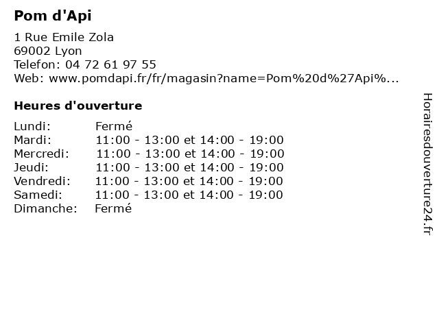 | Mercredi | 11:00-13:00 et 14:00-19:00 |