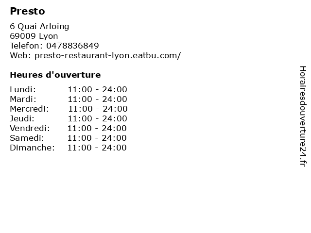 | Lundi | 11:00-24:00 |