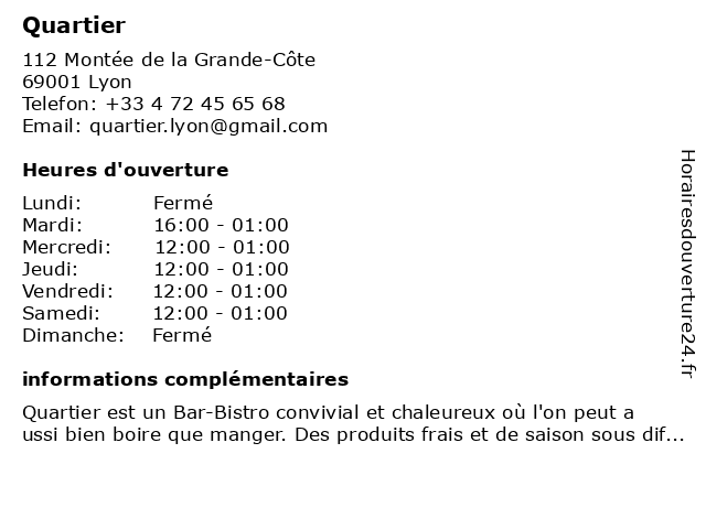 1 Quartier Gabrielle (Distance: 2,04 km) 58 Boulevard Des Brotteaux, 69006 Lyon gabrielle, quartier, restaurants 2 Visual - Vue de Quartier Opticiens (Distance: 2,34 km) 42 avenue Jean Jaurès, 69007 Lyon accessoires, boutique, de, lunettes, opticiens, optique, quartier, visual, vue 3 Parking Zenpark (Quartier Général Frère) (Distance: 2,99 km) 13 Rue Lortet, 69007 Lyon frère, général, parking, quartier, stationnement, zenpark 4 BePark - Parking Swely Quartier Moulin-à-vent (Distance: 5,43 km) 13 Rue Jean Grolier, 69007 Lyon bepark, moulin, parking, quartier, swely, vent 5 Boucherie Du Quartier Bel Air 1 (Distance: 12,53 km) 9 b Place Du 8 Mai 1945, 69800 St Priest air, bel, boucherie, quartier, restaurants 6 Boucherie Du Quartier Bel Air 1 (Distance: 12,54 km) 11 Rue du 8 Mai 1945, 69800 Saint-Priest air, bel, boucherie, boucheries, du, poissonneries, quartier |