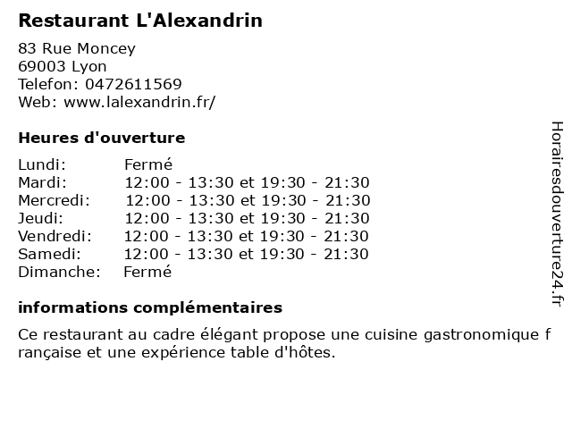 Termes de recherche pour Restaurant L'Alexandrin:restauration, restaurant, café, bar, bistrot, brasserie, pub, resto, bistro, l'alexandrin |