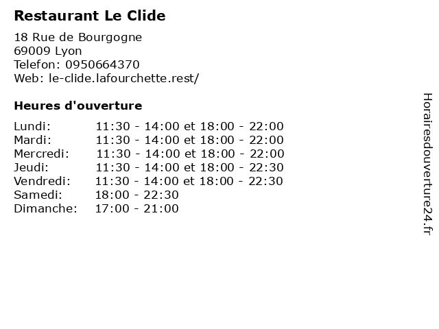 | Vendredi | 11:30-14:00 et 18:00-22:30 |