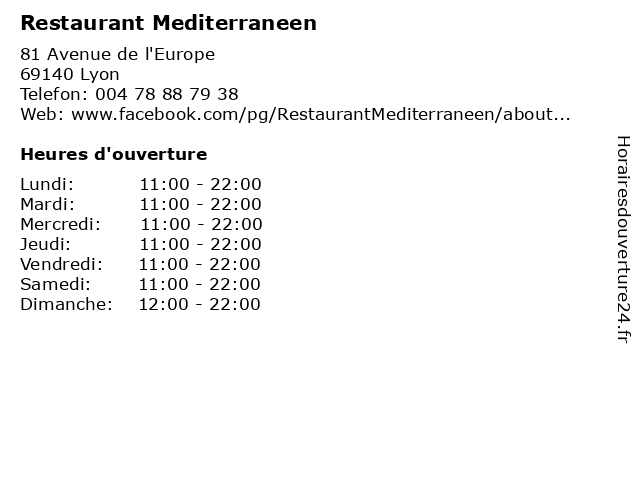 | Dimanche | 12:00-22:00 |